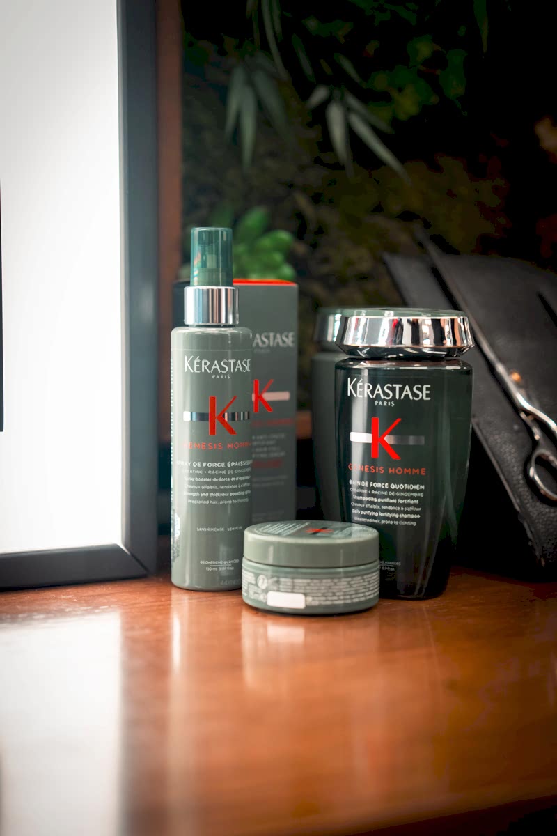 Azerbaycan'daki berber dükkânımızda, müşterilere Kerastase gibi dünya markaları sunuyoruz.